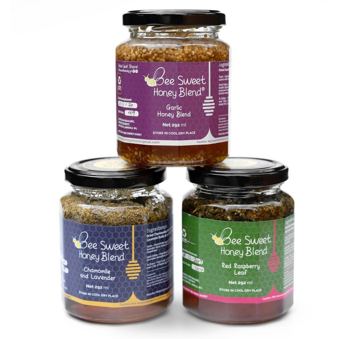 Bee Sweet Honey Blend is made from Pure, Raw, Unfiltered, Organic Jamaican Raw Honey infused with a variety of different natural ingredients. Herbal honey made with dried herbs has shelf life of one year, is shelf-stable and will not require refrigeration.