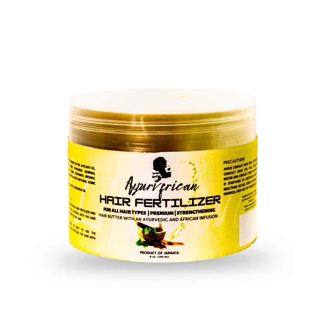 The Ayurvfrican Hair Fertilizer is an extremely hydrating and moisturizing hair butter that is light on the hair and nourishing for the scalp. It is rich in natural oils and Jamaican, African and Ayurvedic herbs and spices that softens and thickens the hair, while repairing and renewing hair follicles.