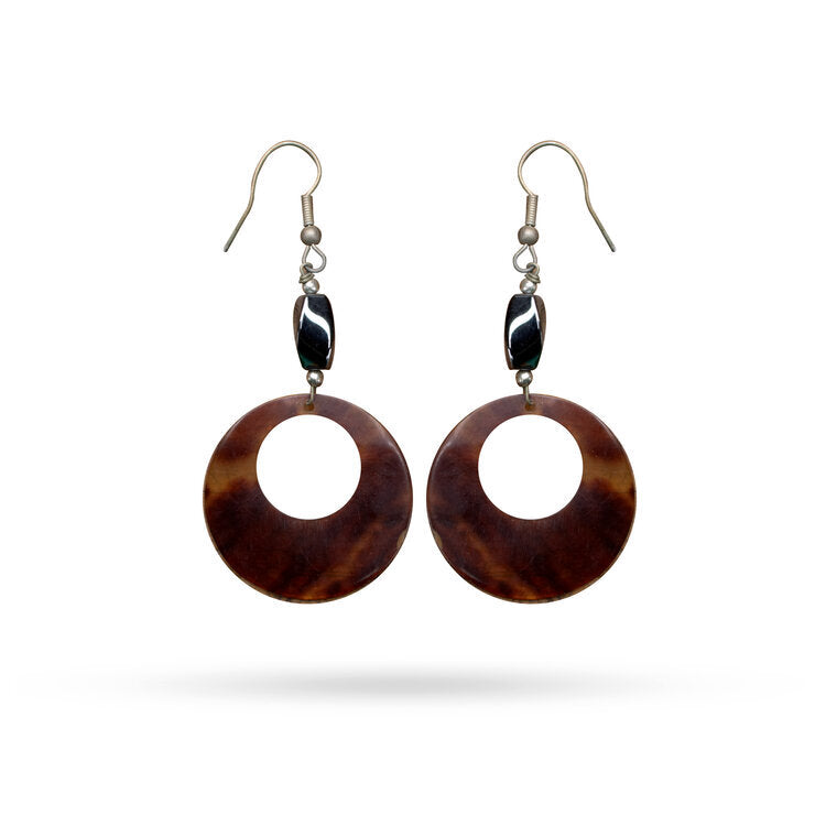 Wooden handmade dangle earrings in a disc shape design. Beautiful ethnic earrings are super lightweight and handmade. Sold in pairs.